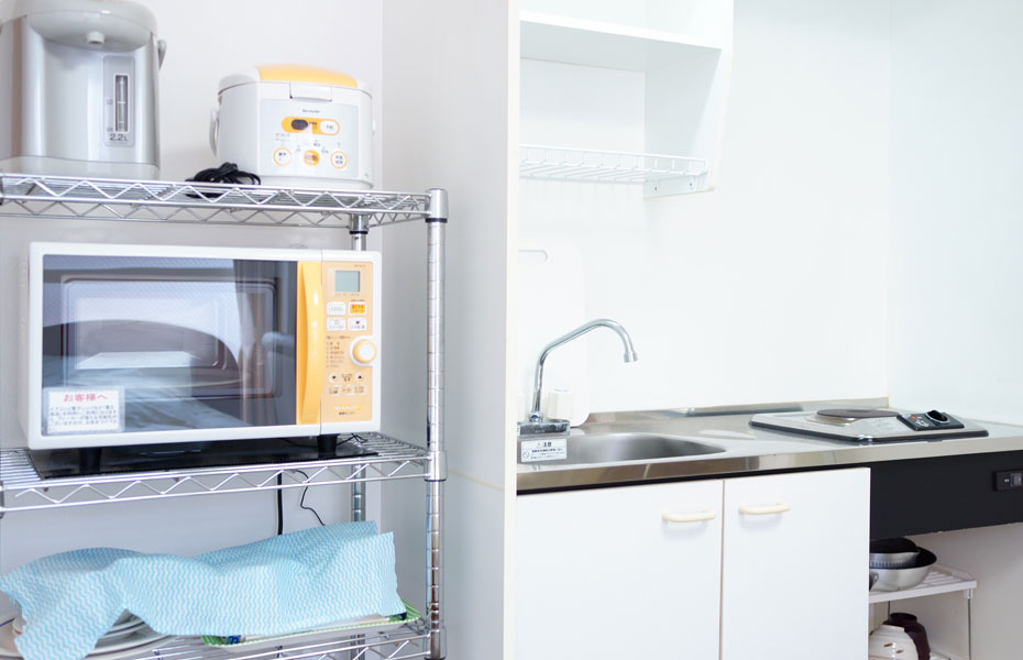 キッチン、食器・調理器具付きで、お料理もできます。