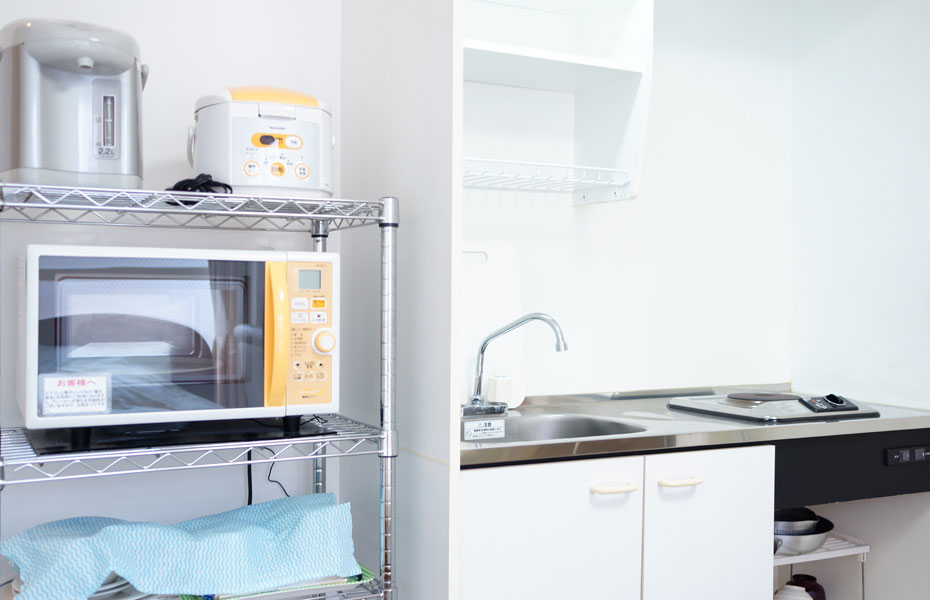 キッチン、食器・調理器具付きで、お料理もできます。