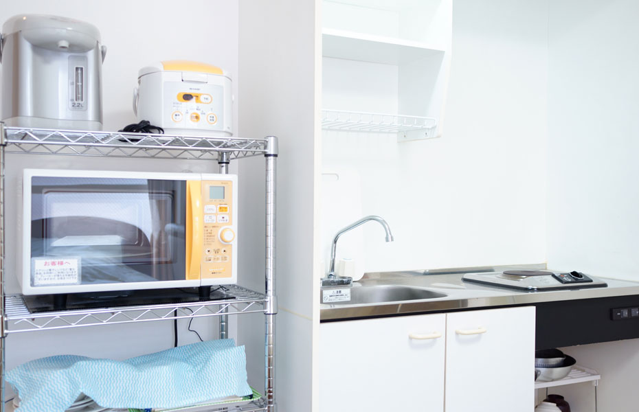 キッチン、食器・調理器具付きで、お料理もできます。